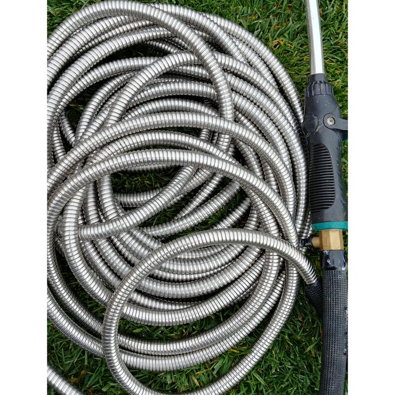 Flexon h2flo lightweight fabric garden hoses. Not available at clybourn place. Heavy duty 304 stainless steel garden hose that will never rip or tear. Click to add item yardworks® 5/8 x 50' rubber garden hose to the compare list. 2.constructed from durable material and engineered with a unique design, this expandable hose is easy to use and easy to store.